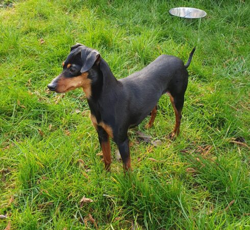 Mehr InfosElla, Pinscher, 5-6 J. 3 kg, 30 cm SH, kastriert, geimpft, gechipt, anhänglich, freundlich zu Mensch und Tier. Privatpflegestelle