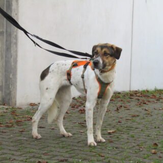 Freundliche, anfangs schüchterne Hündin (geb. 04.01.2023) sucht ein eher ruhiges Zuhause bei Menschen mit Einfühlungsvermögen und genügend Zeit, um noch vieles kennenzulernen.