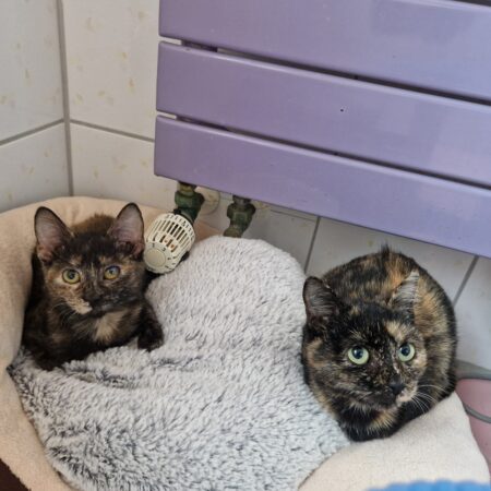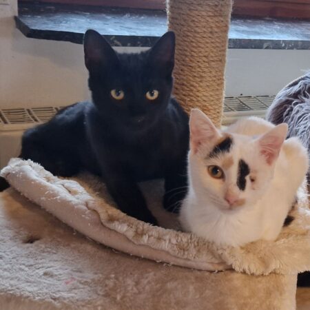 Name: Bueno und Hanuta Geschlecht: männlich Alter: 01.06.2024; 01.10.2024 Farbe: schwarz/braun; kastriert Eigenschaften: nicht sehr an Menschen gewöhnt, neugierig, verträglich mit Artgenossen, Innen- und Außenhaltung möglich...