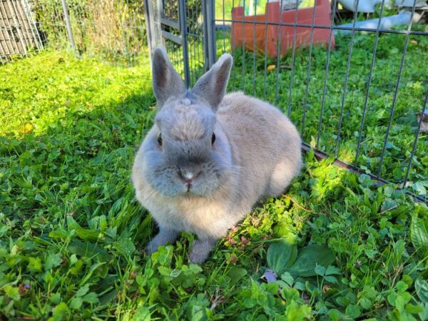 Zwergkaninchen Rosalie (w), 2,5 Jahre jung, geimpft, sucht in Kürze wieder Anschluss an Artgenossen in toller Außenhaltung mit viel Platz zum herumhoppeln.