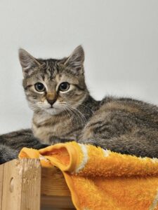 Noch schüchterne, aber verspielte Jungkatze (geb. 07/25) sucht zusammen mit einem Geschwisterchen…
